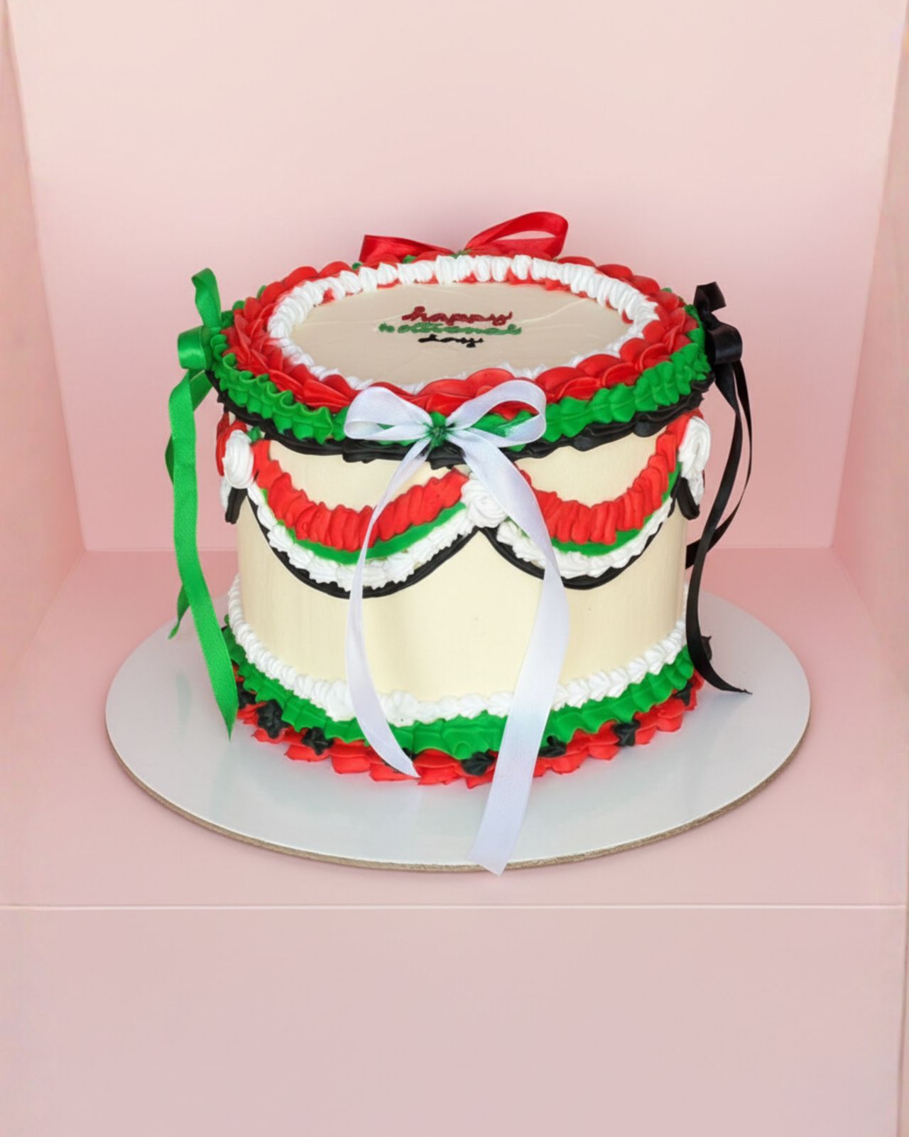 This elegant UAE National Day cake blends timeless charm with patriotic pride β adorned in soft vintage tones and the iconic colors of the UAE flag. β€οΈππ€π€